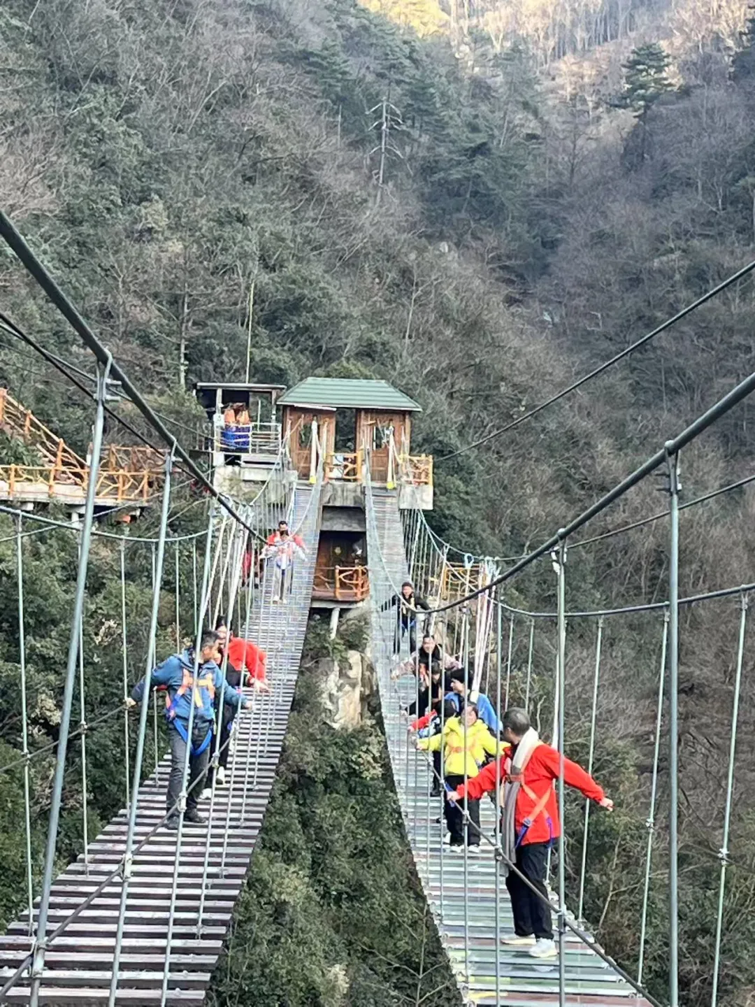 公司整个团队完成了极具挑战性的“穿越空中吊桥”团体项目,在这个过程中团队成员相互鼓励、互相帮助最终全体通过,在“空中滑索”的个人项目中,好几位团队成员大胆获得了突破!